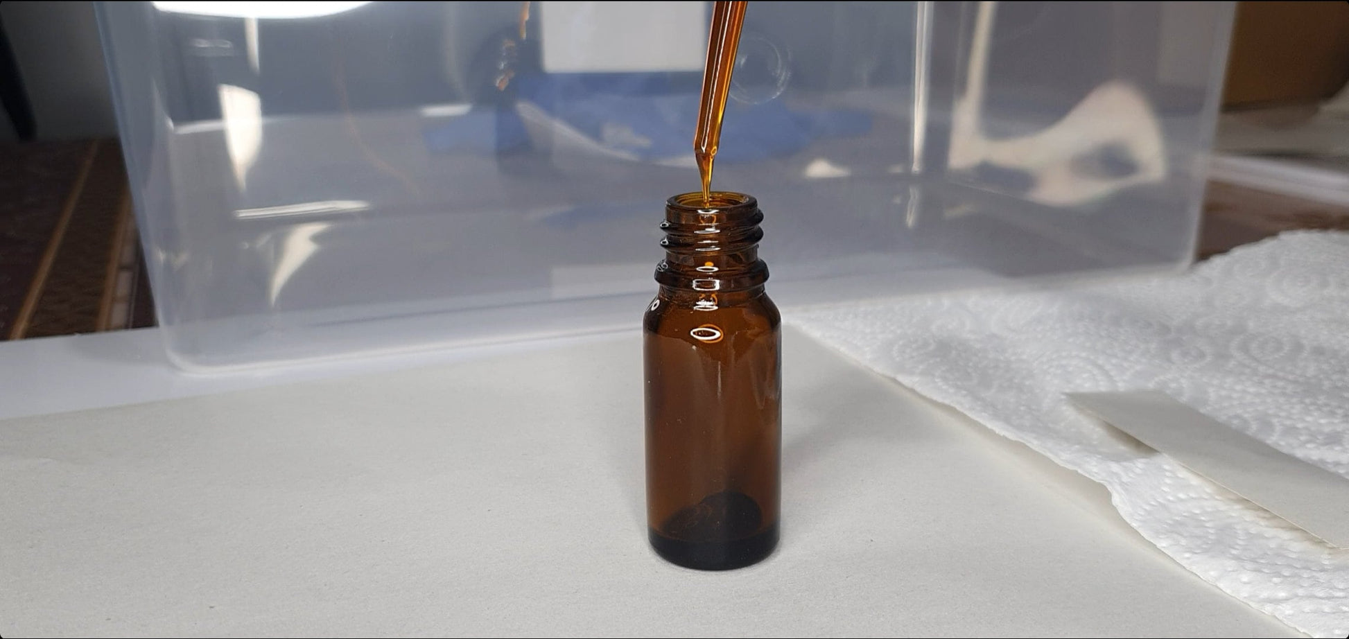 Amber pieces which are unfit for jewelry as well as dust and residues from the gem industry, etc. are submitted to dry distillation in order to yield the so-called Succinol or Crude Amber Oil. Crude (or pyroligneous) Amber Oil is a dark amber-colored or brownish, but clear oily liquid. Its odor is smoky, tarlike, resinous, with a distinct resemblance to the odor of tanned leather. The crude oil finds some application in perfumery where it blends excellently with labdanum, castoreum, ionones, amylsalicylate, etc. and it is sweetened with cananga oil, benzylsalicylate, zingerone, etc. for typical "leather" bases, e.g. in men's colognes and after