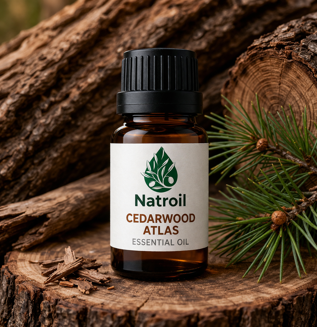 Natroil’s Cedarwood Atlas Essential Oil is a foundational material in perfumery, valued for its warm, dry, and subtly balsamic woody character. Steam distilled from the wood of Cedrus atlantica, this oil delivers a smooth, grounding aroma that forms the backbone of countless fragrance compositions.