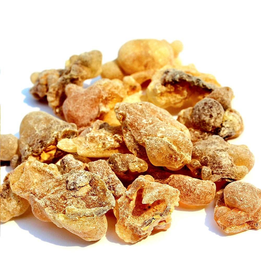 bark: at first, a milky-white liquid appears which then solidifies into tear-shaped amber to orangebrown lumps between the size of a pea and walnut.